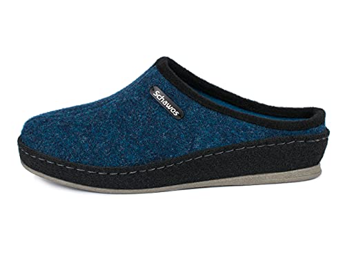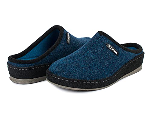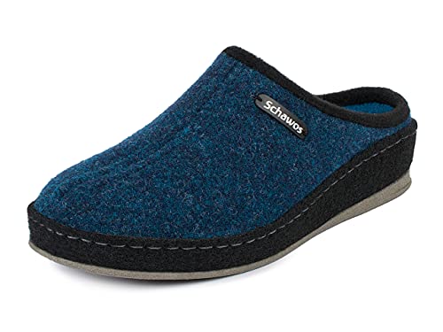 SCHAWOS Pantofole in feltro da donna, plantare anatomico, ammortizzazione del tallone, sfoderate, design a 2 colori (Blu 132F, numeric_42)