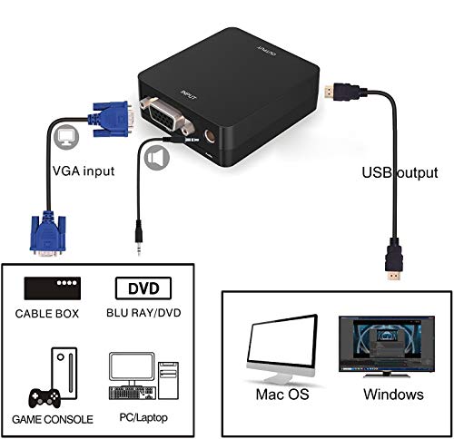 【Full HD 1080P 30fps】 VGA a USB 2.0 Video Capture Card supporta l'ingresso VGA, cattura video fino a 1080p a 30fps senza ritardi. Un grande dispositivo di cattura esterno per laptop, PC, set-top box, blu-ray, ecc