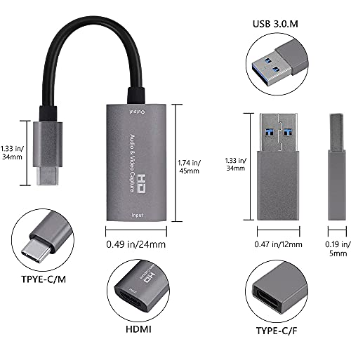 Scheda di acquisizione, HDMI a USB Audio Video Capture Card con convertitore di tipo C a USB 3.0, 4K HD 1080p 30fps Registrazione Video Audio Grabber Gioco HDMI Capture Card per Live Streaming