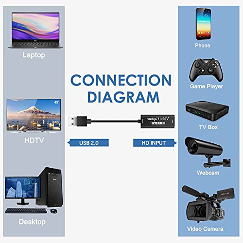 【Ampiamente utilizzato】scheda di acquisizione HDMI 1080P compatibile con la maggior parte dei dispositivi, ad esempio: PS3, PS4, Xbox One Xbox 360, Wili U Wii, Nintendo Switch, DVD, telecamera di sicurezza ZOSI, DSLR, webcam, set top box, DSLR, ecc.
