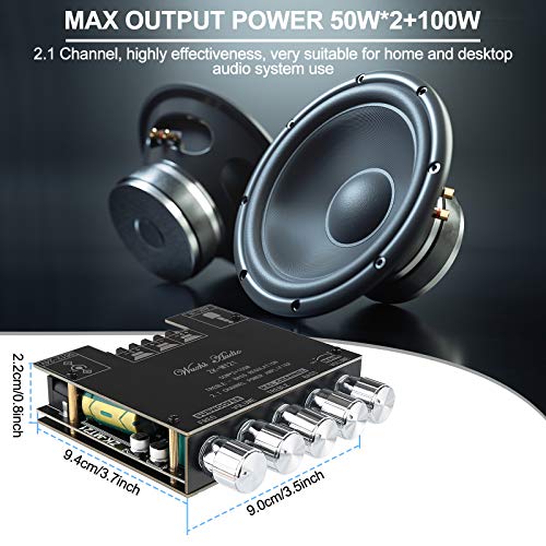 [Alte prestazioni] Modulo amplificatore audio Bluetooth 2.1 canali, potenza di uscita massima 2X50W+100W. Con l'antenna e la base dell'antenna, il segnale è migliore, l'efficienza è alta e l'abilità anti-interferenza è forte