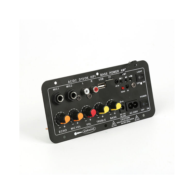 Senza Fili di Bluetooth Stereo Digitale Bordo Dell'amplificatore AC 110/220V DC 12 ~ 24V Doppio Microfono Karaoke Amplificatori per 8-12 Pollici Altoparlante Descrizione: Caratteristiche: 1. Support lettura MP3 canzoni in carta di TF e disc di U;