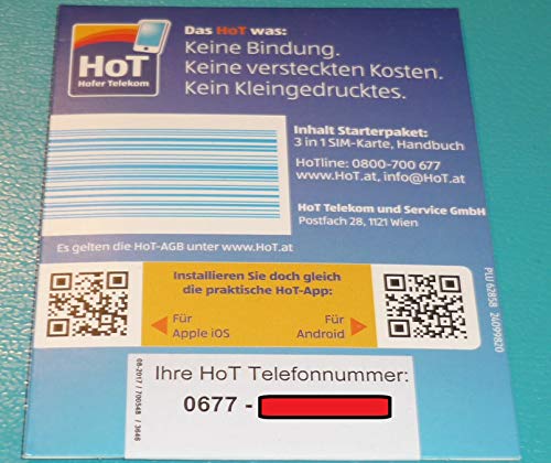Scheda SIM HOT Austria Pre-Paid di ALDI-Austria (rete T-Mobile at) nuova confezione originale