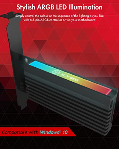 ICY BOX Scheda PCI Express M.2 NVMe SSD a PCIe 3.0, Refrigeratore, Illuminazione LED, M-Key, 2230, 2242, 2260, 2280, Nero, ARGB LED