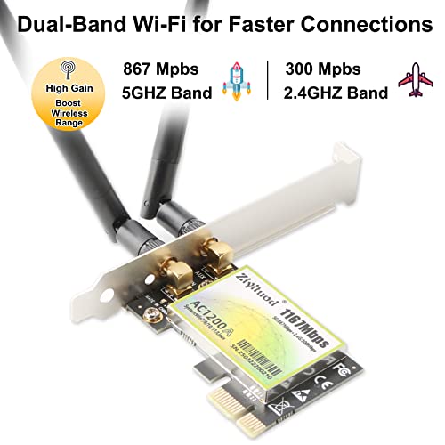 Scheda di Rete, Ziyituod AC1200A Dual Band (2.4G/5G) Wireless PCI Express Adapter Adattatore WiFi Gigabit Scheda WiFi con 2 Antenne Rimovibili ad Alto Guadagno 5dBi, Supporta Windows 11/10/8/7/Linux