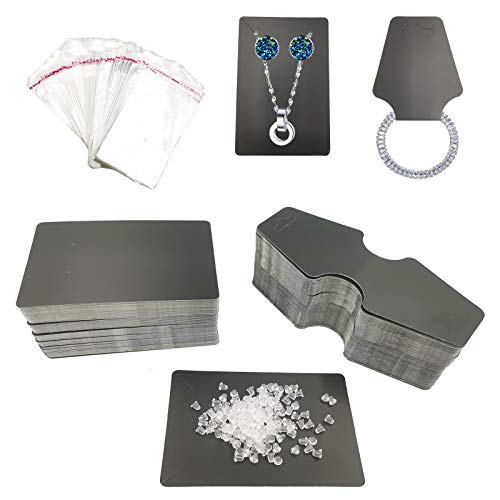 Scheda di Visualizzazione Dell'orecchino Scheda di Visualizzazione della Collana,200 Pezzi Carte Porta Gioielli Etichette di Carta Bianca con 100 Buste Autosigillanti per Display Gioielli (Nero)