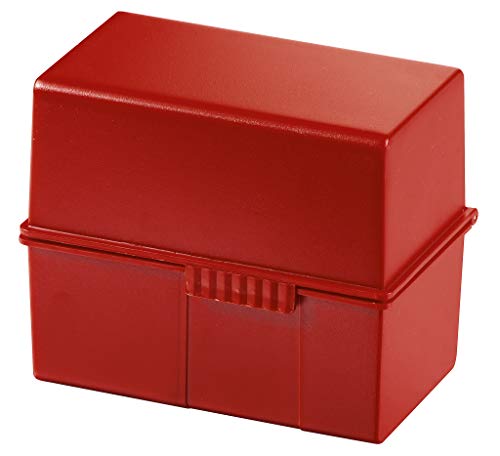 Schedario HAN SIGNAL DIN A7 orizzontale - 3 pz, design traslucido e attraente per 300 schede con cerniera in acciaio, rosso, 977-17