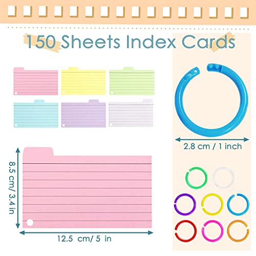 150 schede flash colorate, 70 x 125 mm schede di revisione con anelli e linguette indice, schede a righe per appunti di apprendimento scuola ufficio prendendo la lista delle cose da fare (6 colori)