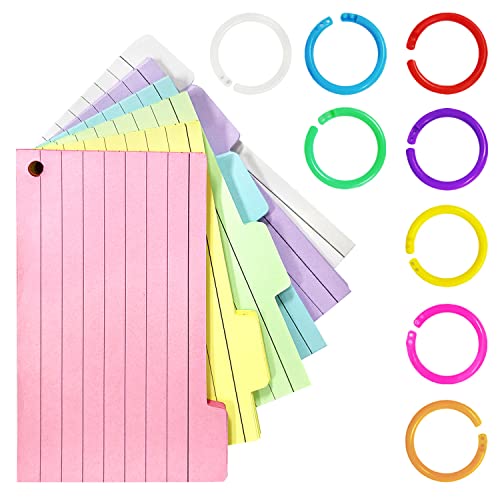 [Design premuroso]: le nostre schede indice presentano un design a linguetta nella parte superiore del foglio per una facile classificazione e visualizzazione. Inoltre, le schede indice forniscono una fibbia ad anello a 8 colori, puoi mescolare e abbinare liberamente, schede flash fai-da-te.(Il colore del pulsante è casuale)