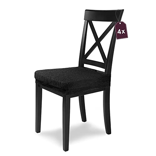 SCHEFFLER-Home Copri Sedie Jara / Set di 4 Coprisedie Elasticizzato per Sedie da Pranzo / Coprisedie Senza Schienale / Fodera Sedia Elasticizzata in poliestere con banda elastica, Nero