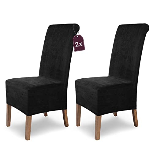 SCHEFFLER-Home Coprisedie Leon/Set di 2 Copri Sedie da Pranzo Elastici/Sedie da Pranzo/Coprisedie Elasticizzato Scamosciato con Fascia Elastica/Coprisedie Eleganti, Nero