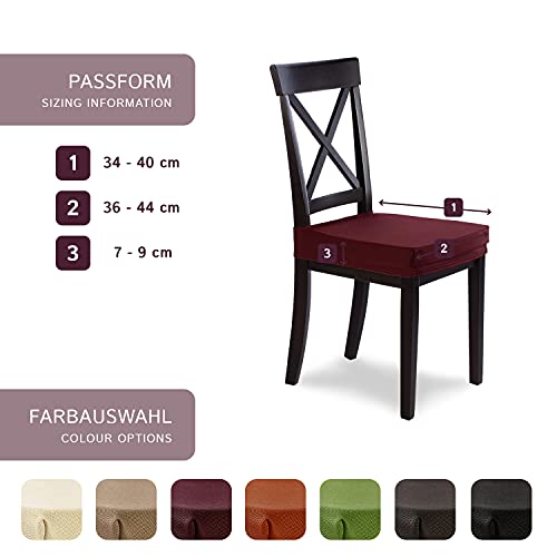 MISURE E LAVAGGIO - I nostri coprisedia universali sono ideali per sedie dalle seguenti dimensioni: Profondità del sedile 34-40 cm, larghezza del sedile 36-44 cm, altezza del cuscino del sedile 7-9 cm. Facili da pulire, le nostre fodere per sedie possono essere lavate in lavatrice fino a 40°, e non devono essere stirate