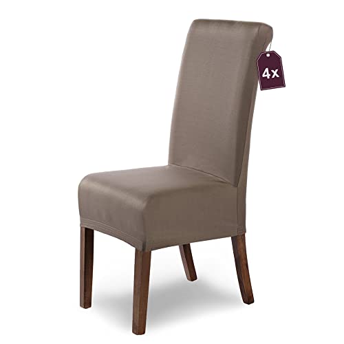 SCHEFFLER-HOME Housse de chaise extensible « Marie » / lot de 4 / taupe/housse de chaise élastique avec protection contre les taches/housse extensible/housse de chaise élégante