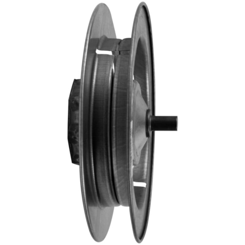 La puleggia della cinghia metallica è parte integrante di una tapparella con cinghia. Viene utilizzato per la guida di un nastro dritto e l'avvolgimento pulito di un nastro a tapparelle largo al massimo 23 mm. La puleggia è progettata per il sistema di tapparelle Maxi e quindi per alberi ottagonali con un diametro di 60 mm. Ha un diametro di 180 mm ed è fatto di metallo per una maggiore stabilità e durata. La puleggia della cinghia è un accessorio per tapparelle ed è montata nel cassonetto delle tapparelle. Per fare questo, viene spinto sull'albero ottagonale con il manicotto a rulli integrato e posizionato in modo che sia in linea retta verso l'uscita del nastro. Viene poi fissato con una vite e la cinghia della tapparella viene fissata al disco della cinghia. Una volta che il disco della cinghia è collegato all'albero della tapparella, il perno dell'asse è agganciato nel cuscinetto a muro. Si prega di notare il diametro del perno dell'asse di 12 mm.