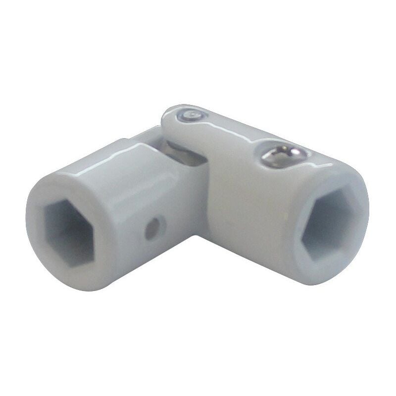 Il giunto cardanico è un pezzo di ricambio adatto per il sistema a manovella delle tapparelle Schellenberg. Sostituisce il precedente giunto cardanico sul cuscinetto della cerniera ed è adatto a bielle esagonali e ad aste di trasmissione con 10 mm di diametro e 6 mm di lunghezza del bordo. Questo giunto universale in zinco pressofuso verniciato a polvere è particolarmente stabile e durevole e ha un diametro di 19 mm.