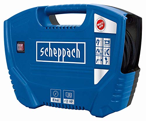Scheppach 5906123901 dispositivo ad aria compressa/Mobiler Compressore Air Force, compatto e portatile, per gonfiare pneumatici per auto, motocicletta e bicicletta, grande gonfiabile Volume, pressione massima di lavoro: 8 Bar, 1100 W, 230 V