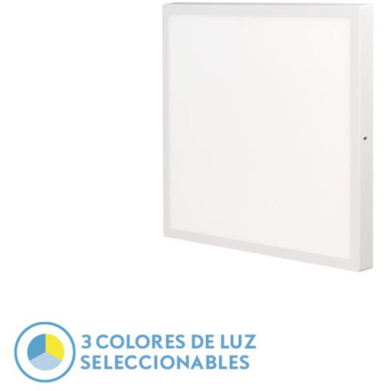 Pannello di superficie della serie LLANO di colore BIANCO. Realizzato in alluminio e policarbonato. Ha una potenza di 48 watt, 4800 lumen e SELEZIONABILE IN FASE DI MONTAGGIO in TRE TEMPERATURE DI LUCE, 3000-4000-6500K (luce bianca calda, naturale o fredda). Ha una misura di 3,8x50x50 centimetri. In questa serie possiamo trovare diverse misure di pannelli di superficie, con le relative potenze di 72w, 48w e 36w, tutte con 3000-4000-6500k, sia in bianco che nickel.