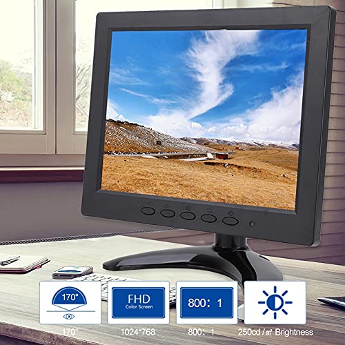 Schermo LCD IPS da 8 Pollici Monitor Portatile, 1024 x 768 Angolo di Visione: 178 ° (H)/100 ° V, Monitor Audio Video HD Supporta Ingresso HDMI/VGA/BNC/AV con luminanza: 250 CD/m2(Spina Europea)
