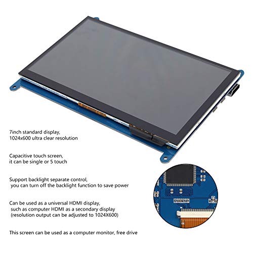Schermo TFT LCD da 7 pollici, schermo HD Monitor di risoluzione 1024 x 600 HDMI, schermo tattile capacitivo monitor elettronico con linea HD per Raspberry Pi