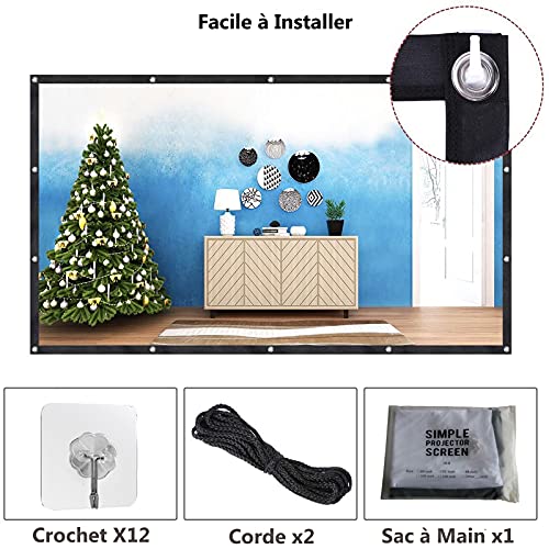 【Facile da installare】il nostro schermo del proiettore ha 12 fori, è possibile utilizzare ganci, corde, staffe, chiodi, nastro biadesivo per fissare facilmente lo schermo di proiezione sulla parete / staffa.(Include 2 corde da 3.5 m, 12 ganci)