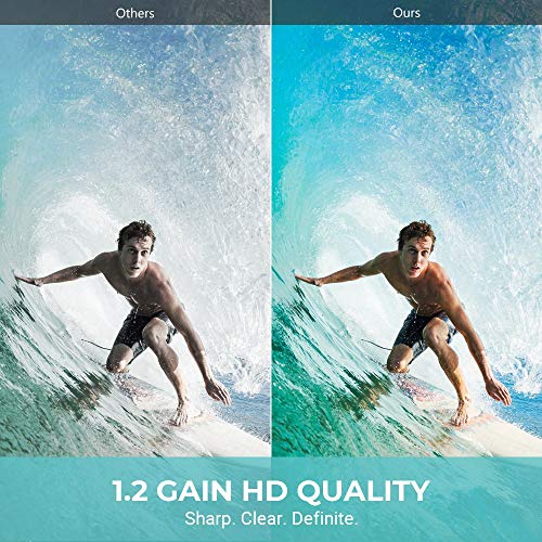 ◕‿◕ BUONA ESPERIENZA VISIVA ✈ Lo schermo ha un rapporto aspetto di 16: 9 e diagonale 120 pollici. Ha un angolo di visione 170 gradi, la superficie dello schermo è composta da quattro strati (strato diffuso in rilievo sulla superficie, rivestimento superiore in PVC, strato intermedio in fibra di vetro ispessito e rivestimento in PVC inferiore), è dotato di uno schermo di 1.2 HD. Il grande schermo del proiettore offre un'esperienza visiva migliore e puoi vedere film in una distanza opportuna c