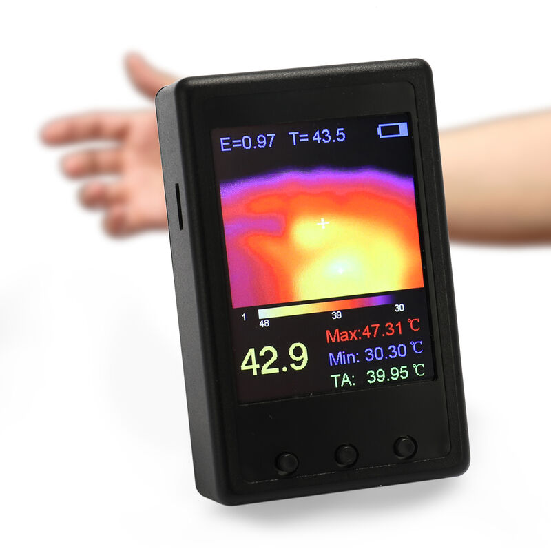 Questa è una termocamera portatile e multifunzionale, compatta e leggera, facile da trasportare. Può essere utilizzato in una varietà di situazioni ed è uno strumento indispensabile per uso domestico e industriale. Specifiche: < br /> Materiale: ABS Colore: nero Display: display a colori da 2,4 pollici, 320*240 Risoluzione: 32*24 FOV/Lunghezza focale minima: 55°*35° Intervalli di temperatura: -40℃~300℃ Precisione della misurazione: ±2℃< br /> Frequenza di imaging: 8Hz Emissività: 0,01~1,00 regolabile Modalità di messa a fuoco: fissa Alimentazione: 1 * batteria al litio, 1000mAh (inclusa) Temperatura di funzionamento: 0℃~50℃ Temperatura di conservazione: -40℃~70℃ Umidità