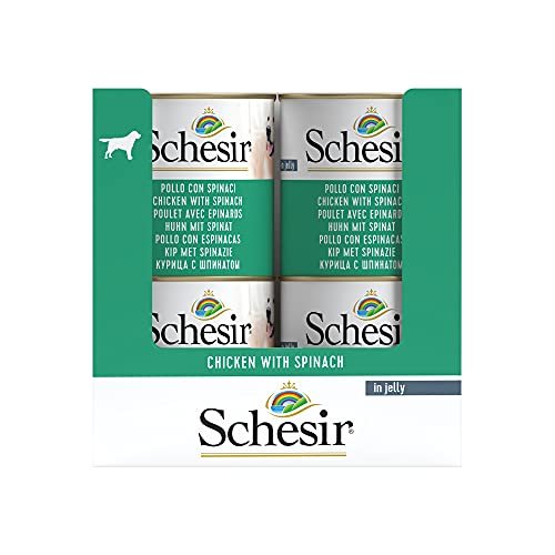 Schesir, Cibo Umido per Cani Adulti al Gusto Pollo con Spinaci, Filetti in Morbida Gelatina - Totale 4,56 kg (16 Lattine da 285G)