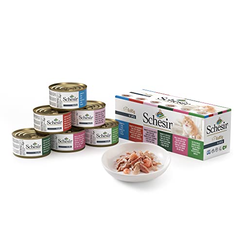 Schesir, Cibo Umido per Gatti Adulti Gusti Assortiti, Filetti in Gelatina - Totale 510 G (6 Lattine da 85G)