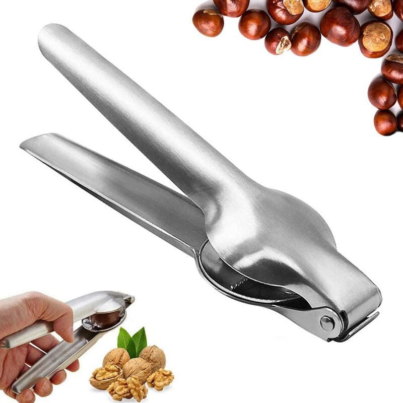 L'apribottiglie in castagno è realizzato in acciaio inossidabile di alta qualità, che è antiossidante, anticorrosivo, sicuro e non tossico, resistente e durevole. Dopo che la clip della castagna è lucidata, la superficie è liscia, comoda e comoda e non ti farà male alle mani quando sbucci le noci. Esecuzione squisita, stampaggio monopezzo, aspetto elegante, sensazione confortevole e materiale spesso. Approfitta del design, facile da usare, risparmia tempo e fatica, rendi la tua vita più comoda. Lo schiaccianoci è progettato in modo unico, indipendentemente dalle dimensioni del dado, può facilmente rompere i dadi ostinati in pochi secondi. Può aprire facilmente il guscio della noce, adatto per nocciole, noci para, noci di macadamia, noci e mandorle.