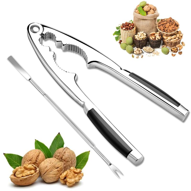 I nostri schiaccianoci sono realizzati in lega di zinco resistente e duratura. lo schiaccianoci in metallo è antiruggine e non facile da rompere. Lo schiaccianoci non si piegherà o si romperà durante l'uso. Schiaccianoci superficie liscia, schiaccianoci in metallo con impugnatura antiscivolo, comodo e conveniente, non farà male alle mani durante l'uso, il design a dente di sega può facilmente staccare l'interno dell'impasto e lanciarlo con l'estensione della maniglia per risparmiare fatica . Il nostro schiaccianoci con 2 diverse aperture e leva può coprire noci di diverse dimensioni senza troppi sforzi. Le estremità posteriori del manico non entrano in collisione anche quando il biscotto alla nocciola è completamente chiuso, il che riduce al minimo anche il rischio di intrappolamento. Schiaccianoci Adatto per la maggior parte di noci sgusciate, noci pecan, nocciole, mandorle, nocciole, noci di macadamia, ecc. È adatto anche per frutti di mare, picnic, feste o a casa utilizzando una