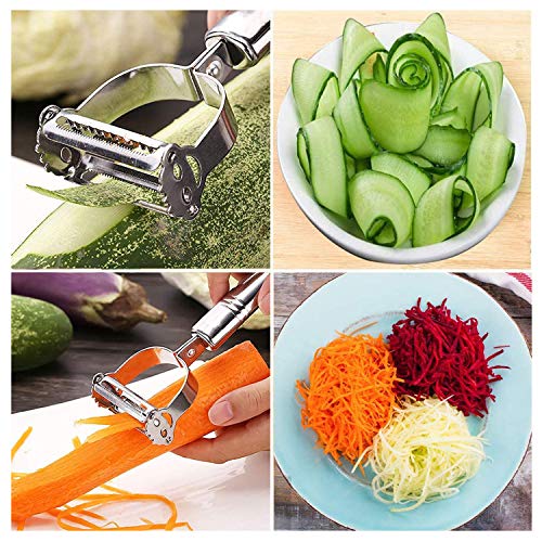 【ALTA EFFICIENZA AUSILIARIA】Ti stai ancora preoccupando di come schiacciare patate e frutta varia? Penso che lo schiacciapatate e il pelapatate siano strumenti perfetti e ideali in cucina. La grattugia può essere utilizzata per pelare e grattugiare per fare varie insalate, e lo schiacciapatate può fare tutti i tipi di purè di patate e purè di patate viola, che è anche molto adatto Prepara cibi complementari e vari succhi freschi per i bambini.
