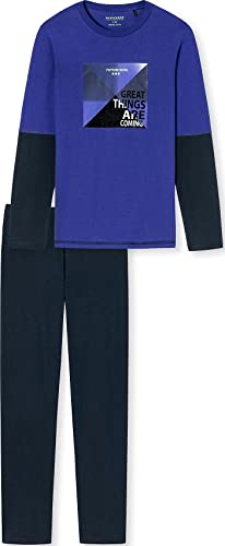 Schiesser Schlafanzug Lang Set di Pigiama, Blu Reale, 152 cm Bambino