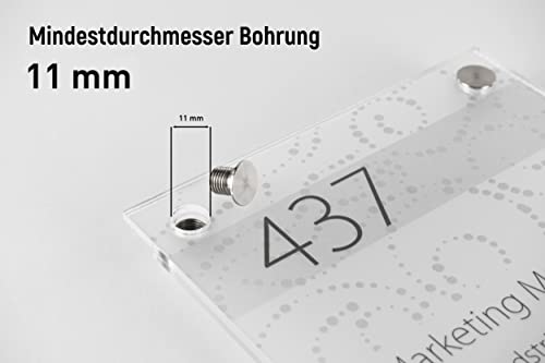 SCHILDER Systeme 4 pezzi in acciaio inox - Distanziatori li13.13 con filettatura sinistra, viti a testa piatta e tasselli, per il fissaggio di cartelli, supporto da parete alta qualità targhe vetro