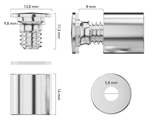 Materiale: supporto da parete in acciaio inox con un diametro della testa di 14 mm e una distanza dalla parete di 13 mm per bicchieri e targhe con uno spessore di 3-8 mm