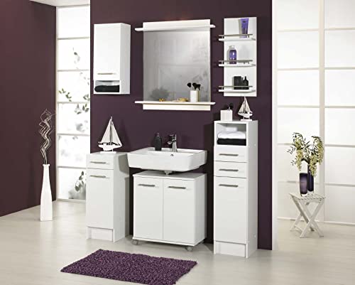 Pratico mobiletto sottolavabo su quattro ruote, di cui due sono bloccabili