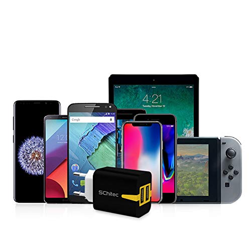 SCHITEC 2 Porte Caricatore USB,5V/2.1A Caricatore USB da Muro con 2 Cavo USB Travel Caricabatterie USB Presa Adattatore USB Universale per iPhone XS XR Samsung M20 Huawei P30 P20 Lite,Tablet e Altro