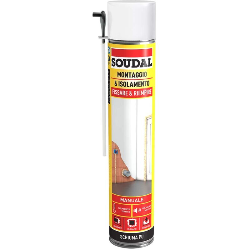 Soudal schiuma poliuretanica universale ml.750 ideale per riempimenti, coibentazioni, insonorizzazioni e sigillature in infissi, impianti di riscaldamento, refrigerazione ed installazioni elettriche. classe di resistenza al fuoco b3 bombola da 750 ml autoestrudente caratteristiche tecniche base poliuretano consistenza schiuma vulcanizzazione reazione con umidità tempo di formazione pelle ca. 8 min. (20°c/65% r.h.) indurimento a spessore 1,5h per un giunto di 30mm (20°c/65% r.h.) resa 1000 ml / 35l ritiro < 10% postespansione esente peso specifico ca. 25kg/m³ (completamente polimerizzata ) resistenza alle temperature -40°c a +90°c ( polimerizzata ) classe b3 (din4102 ) assorbimento d'acqua 2% vol. (din 53429)