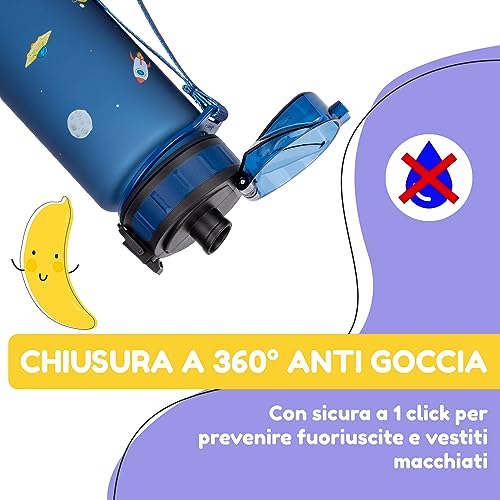 DESIGN ANTI PERDITE: Prova il massimo comfort nel bere da questa borraccia con beccuccio grazie alla chiusura in 1 click, che ti permette di aprire la bottiglia con una sola mano. Il coperchio della bottiglia con chiusura a sigillo è anti perdita.