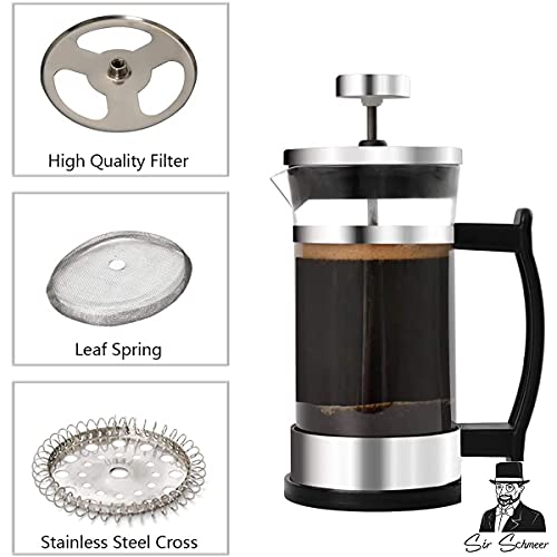 Sir Schmeer Tea & Coffee Maker - French Press in acciaio inox, caffettiera (350 ml, 2 tazze)