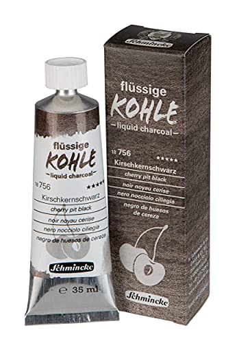 Schmincke - Carboncino liquido, nero noccioli di ciliegia, 35 ml, 18 756 009, per pittura a carboncino, disegno a carboncino e fondi, vegan