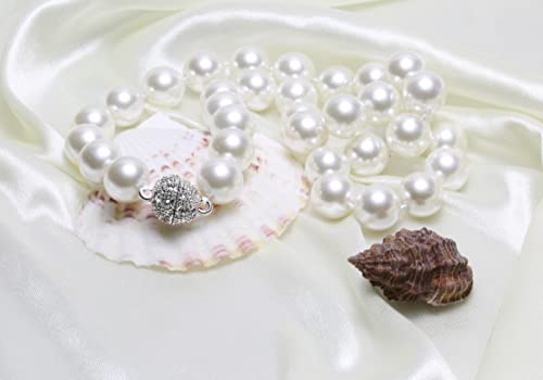 Schmuckwilli Tahiti donna conchiglia Perle shell Collane di Mallorca perle chiusura magnetica bianca vera conchiglia 50cm dmk2017-50 (12mm)