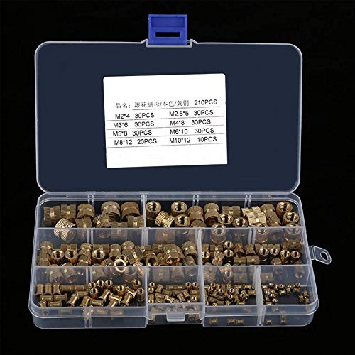 Schneespitze 210 Pezzi Filettati Con Testa Piatta,Dado Zigrinato Cilindro Rotondo Filettato con Scatola di Plastica Misura M2 M2.5 M3 M4 M5 M6 M8 M10
