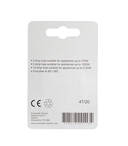 Schneider Electric 400113 5 A BS1362 Fusibili Confezione da 4, Nero, Set di 4 Pezzi