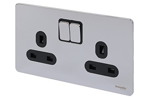 Schneider electric GU1442BPC - Finale - interruttore singolo con placca senza viti (13a, cromo, telaio nero di interruttori)