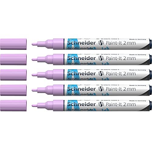 Schneider Paint-It 120128 - Matite acriliche con punta rotonda da 2 mm, colori acrilici ad alta copertura per legno, tela, pietra, ecc., confezione da 5 pezzi, viola pastello