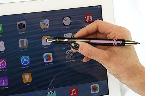 Penna touch per l' uso di tablet e smartphone. La punta soft touch funziona con grande precisione su schermi e consente di evitare le impronte lasciate dalle dita sugli schermi. Funziona anche con la maggior parte dei guanti. Il penna combina il design classico con elementi di stile moderno. L' apparenza unica è dovuta al clip in metallo parzialmente premuto e alle strisce gommate in colori assortiti. Una Tripla linea in plastica morbida - l' interpretazione del logo...