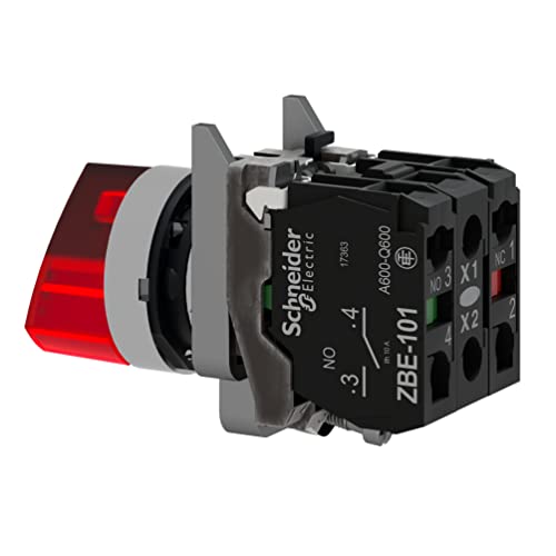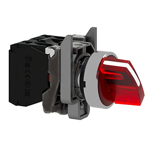 Schneider XB4BK124G5 Selettore Luminoso Rosso LED, Bianco