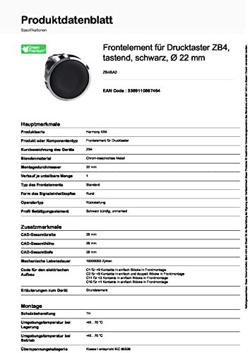 Schneider ZB4BA2 Testa Pulsante Nero, Bianco
