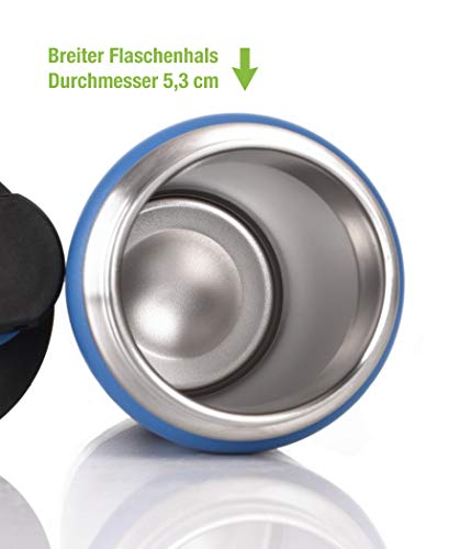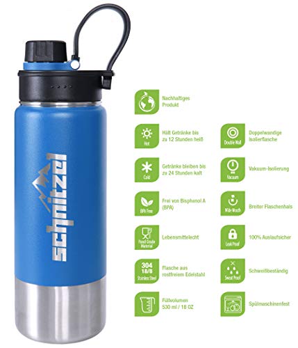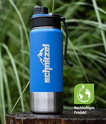 SCHNITZEL UJO Borraccia in acciaio inox - per bambini - bottiglia termica con manico a prova di perdita - doppia parete isolante - antiruggine e lavabile in lavastoviglie - priva di BPA - 500 ml - blu