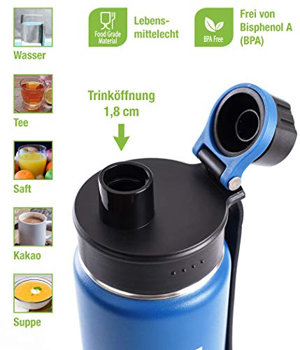 DESIGN UJO: La borraccia termica sta comodamente in mano ed è provvista di un pratico passante in gomma sul tappo con chiusura a vite sull'ampia apertura, che consente facilmente di bere a grandi e piccoli. È inoltre rivestita con una resistente e colorata verniciatura a polvere antiscivolo e decorata con l'incisione laser del nostro logo.